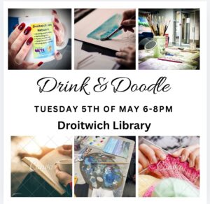 Our next Daytime Doodle session will be on Monday 27th April from 1pm to 3pm, in the upstairs Meeting Room in Droitwich Library. The lift will be in operation. Bring whatever you are working on and share the workspace with others, engage in conversation. and relax. Bring your own refreshments.