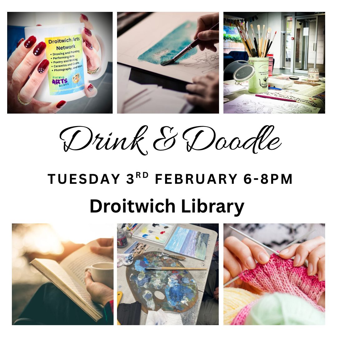 Our next Drink and Doodle session is this coming Tuesday 3rd February at Droitwich Library between 6pm and 8pm. This session is for paid up Members of Droitwich Arts Network Community Interest Company.